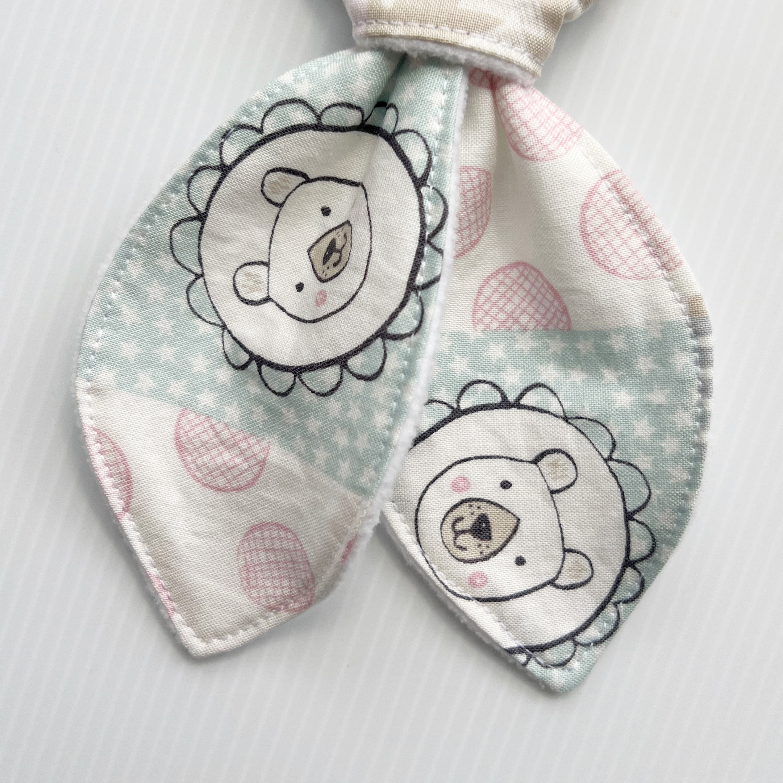 Cotton Bunny Ears with 100% Cotton facing a soft backing material, to give texture for teether. Easy to hold.
